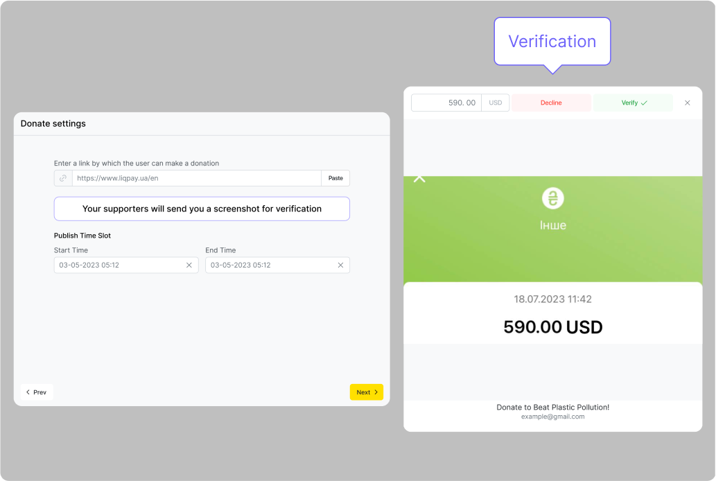 Uveďte odkaz na zdroj, kde mohou podporovatelé přispět vaší organizaci. Následně ověříte snímek obrazovky s potvrzením o daru.