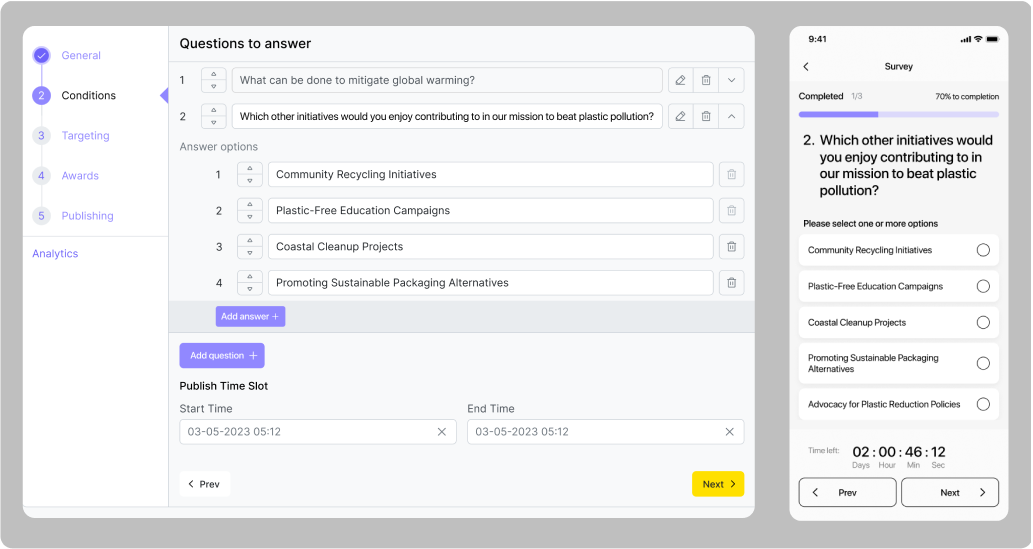Časový interval podmínky je čas, kdy mají uživatelé možnost dokončit úkol. Je nastaven v hlavních nastaveních úkolu a nemůže být delší než časový interval zveřejnění.