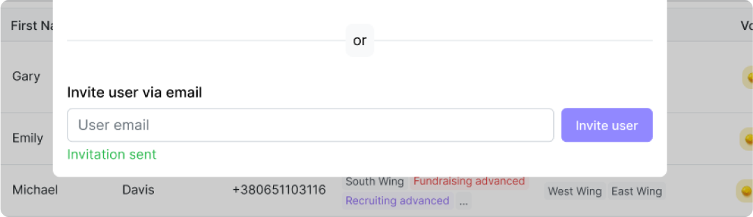 Pomocí vyhledávacího pole můžete vyhledat konkrétní dobrovolníky podle e-mailu nebo telefonního čísla.